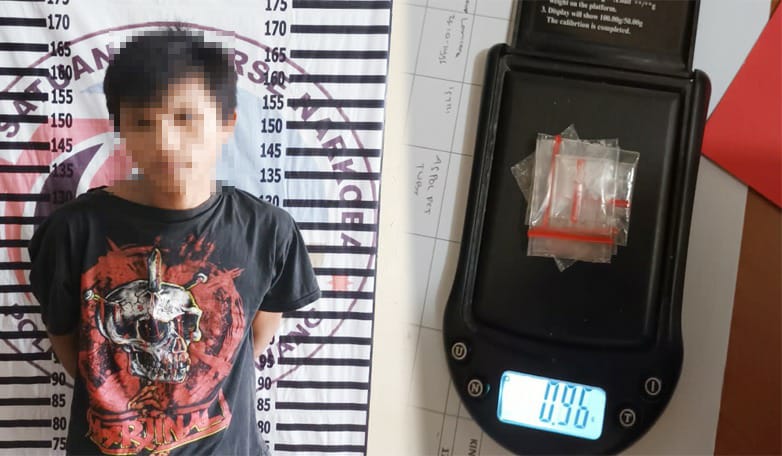 “Mendapatkan informasi tersebut, petugas kami langsung ke lokasi dan di kebun albasia sedang ada seorang pria dengan gerak gerik yang mencurigakan. Setelah dilakukan penggeledahan badan, petugas kami menemukan BB berupa narkotika jenis sabu, timbangan digital, sedotan dan pyrex yang disimpan di dalam kantong celana sebelah kanan,” papar AKP Aris.