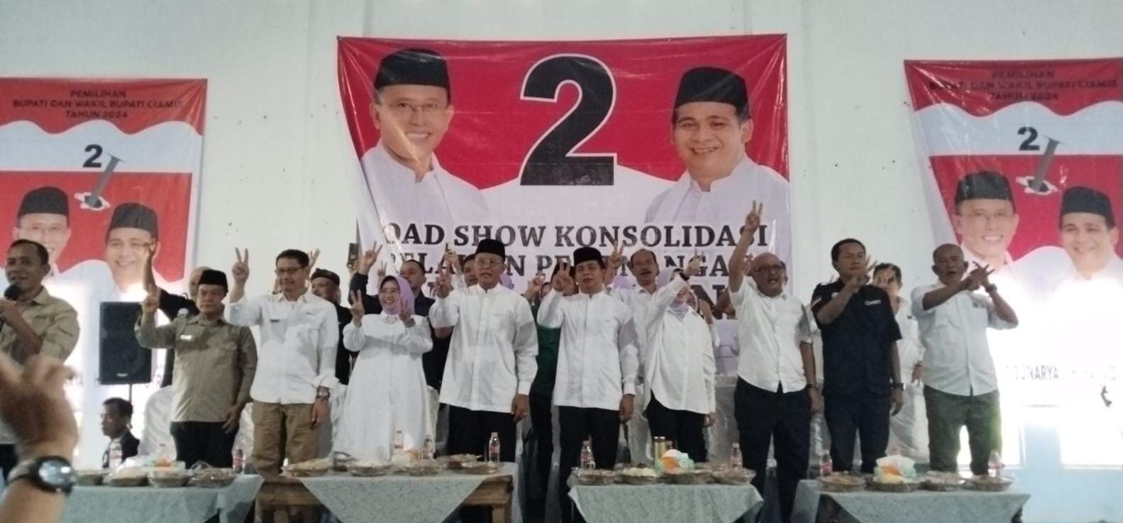 Ciamis Jabar, SIBER88.CO.ID_Pasangan calon bupati dan wakil bupati kabupaten Ciamis Herdiat – Yana mengadakan road show konsolidasi kemenangan relawan di kecamatan Cisaga kabupaten Ciamis.