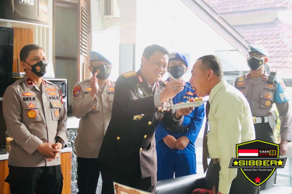 Tumpeng besar dan lagu selamat ulang tahun mengiringi kedatangan Kapolda Banten dan rombongan, disambut langsung oleh Danrem 064/MY Brigjen TNI Yunianto dan beberapa pejabat utama Korem 064/MY.