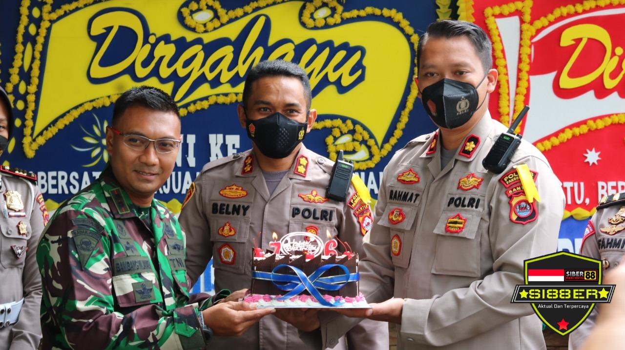 Pandeglang Banten, SIBER88.CO.ID_Memperingati Hari Ulang Tahun (HUT) TNI yang ke-76 Tahun 2021, Kapolres Pandeglang Polda Banten AKBP Belny Warlansyah, S.H.,S.I.K.,M.H, memberikan kejutan ulang tahun kepada Yonif Infantri 320 Pandeglang, di Markas Yonif Infantri 320 Pandeglang, Selasa (05/10/2021).