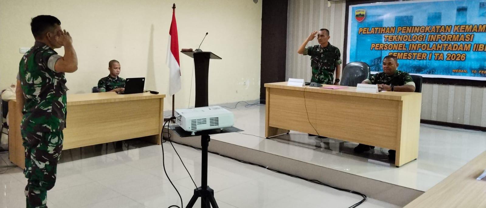 Medan Sumut, SIBER88.CO.ID_Infolahtadam I/Bukit Barisan menggelar Pelatihan Peningkatan Kemampuan Teknologi Informasi Personel Semester I Tahun Anggaran (TA) 2026. Kegiatan ini dilaksanakan di Makodam I/Bukit Barisan Medan, Selasa (10/2/2026).