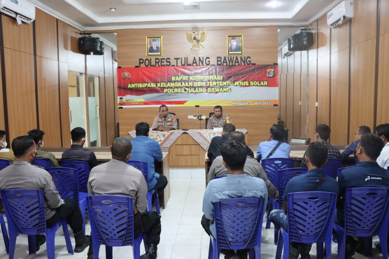 “Saya harap tidak ada masyarakat yang melakukan pengisian BBM dengan menggunakan jerigen di SPBU yang ada di wilayah hukum Polres Tulang Bawang,” kata Kapolres Tulang Bawang, AKBP Hujra Soumena, SIK, MH, saat memimpin rapat koordinasi (rakor) dengan para pengelola SPBU hari Senin (11/04/2022), pukul 10.45 WIB, di aula Mapolres setempat.