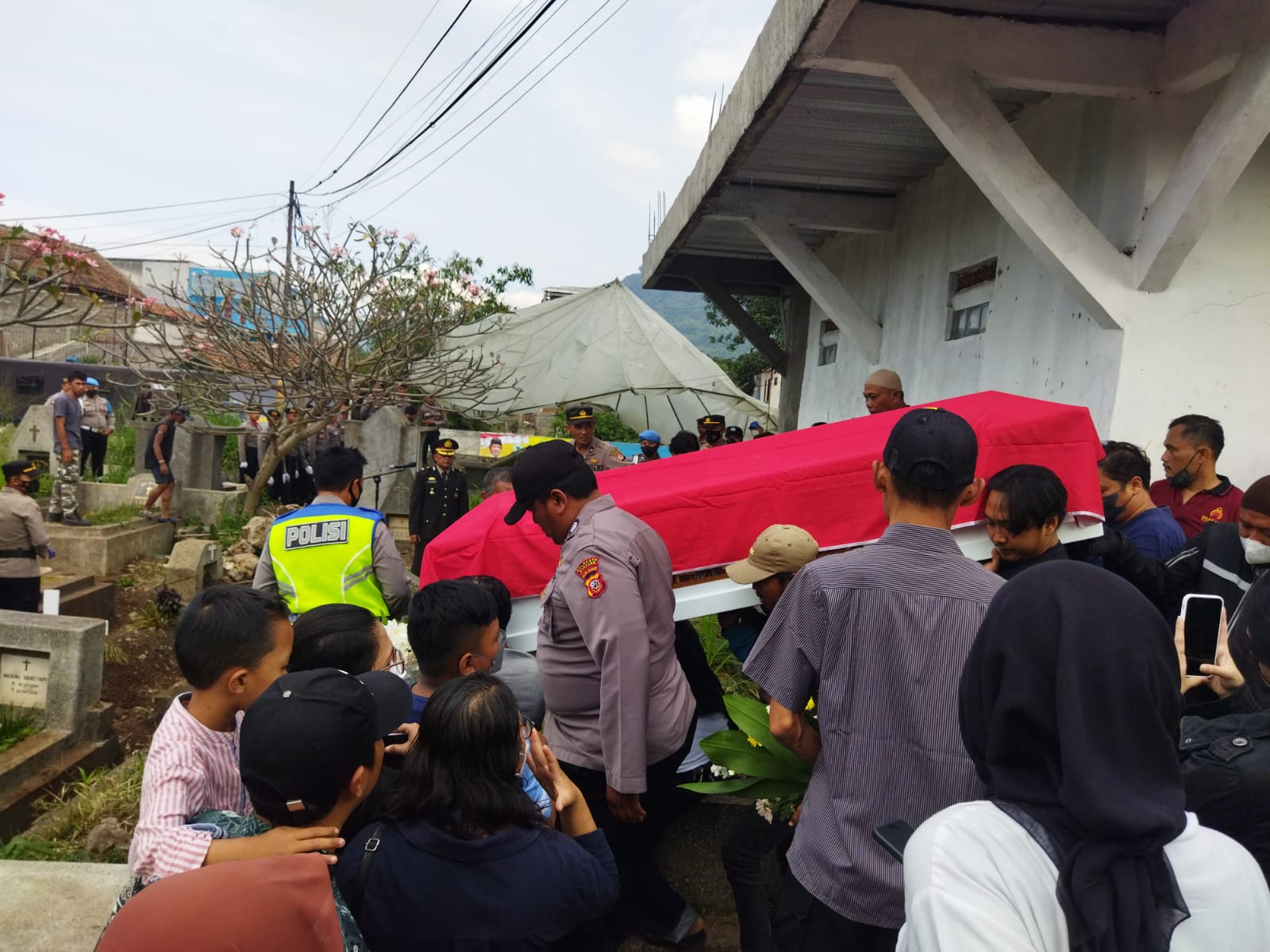 Upacara pemakaman jenazah Almarhum Aiptu Yohanes dipimpin langsung oleh Kapolsek dayeuhkolot Kompol Tedy Rusman SE. pada sabtu pagi (2/7/2022). Suasana haru dan tangis mewarnai prosesi pemakaman.