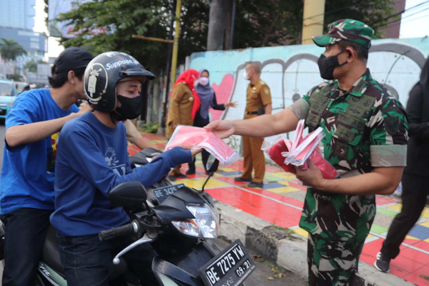 Bandar Lampung, SIBER88.CO.ID_ Dalam rangka menyambut hari Kemerdekaan RI ke-77 tahun 2022, Dandim 0410/KBL Kolonel Inf Faisol Izuddin bersama Walikota Bandar Lampung dan Ketua DPRD Kota Bandar Lampung membagikan bendera merah putih kepada warga Kota Bandar Lampung.