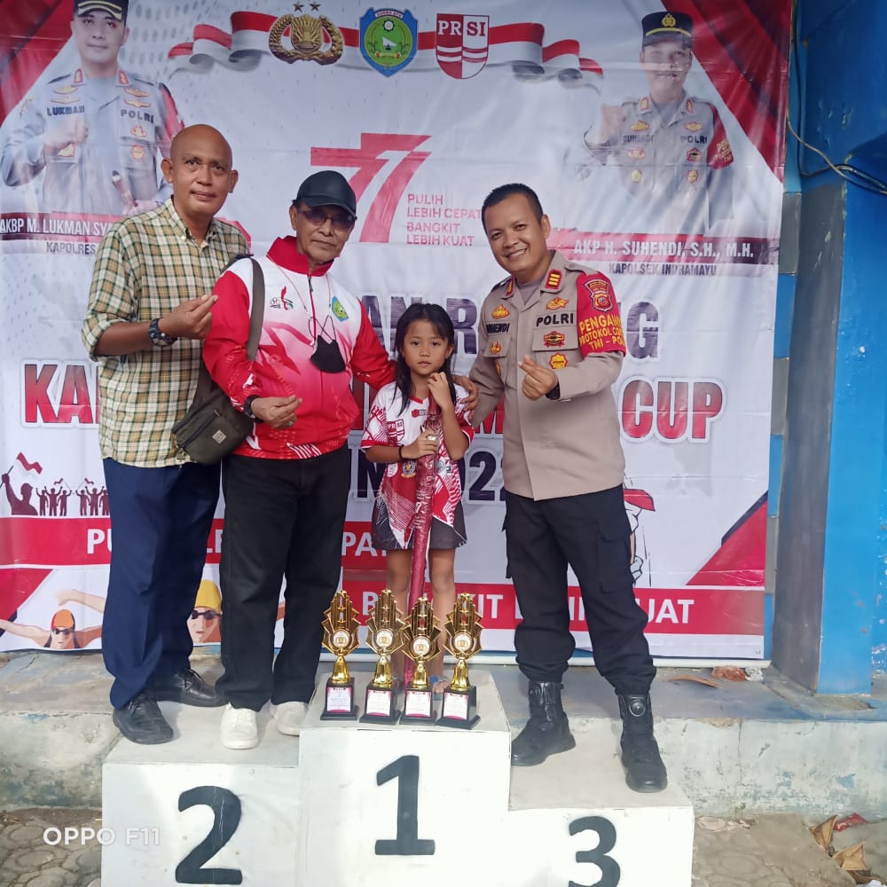 Indramayu Jabar, SIBER88.CO.ID_Prestasi membanggakan kembali diraih oleh siswi SD Juara Wirautama Patrol, Noura Abelia Hadiviani pada ajang lomba renang Kapolsek Cup yang dilaksanakan di kolam renang Tirta Kencana Sport Centre Indramayu,Minggu(14/8/2022).