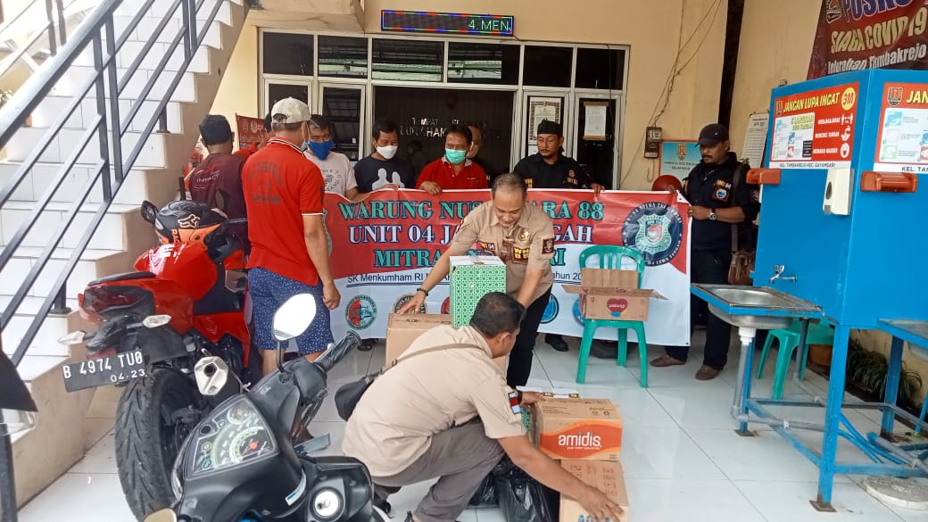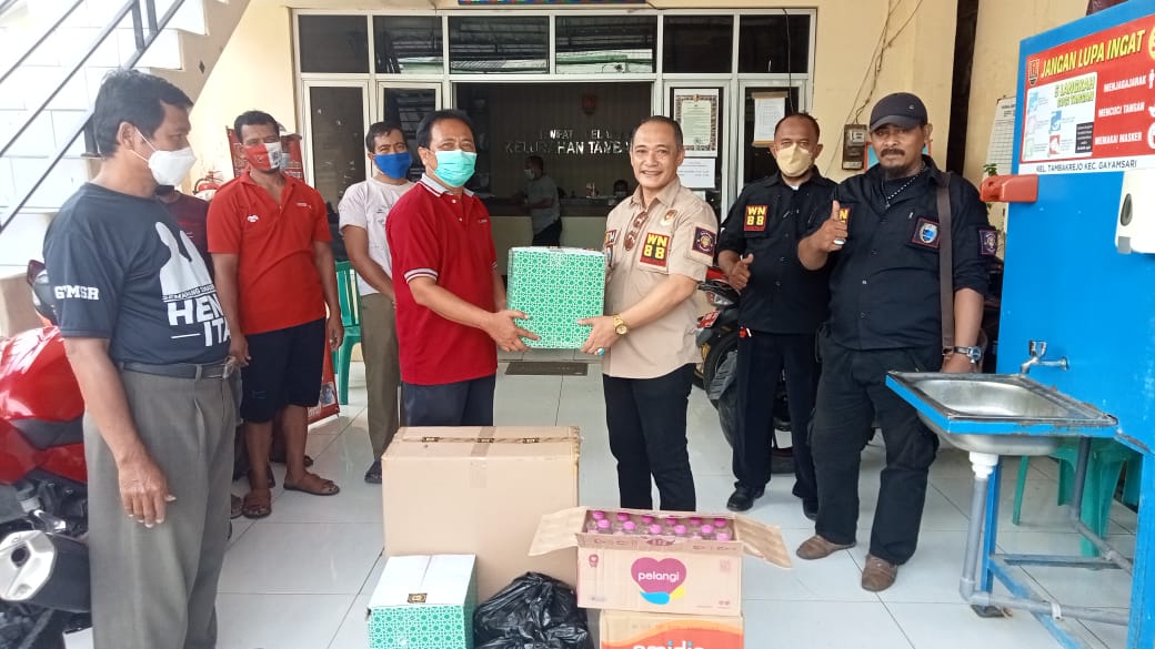 Seluruh anggota WN88 Unit 04 Jateng bersama Lurah Tambakrejo Setyo Widiatmoko membagi-bagikan 100 nasi boks kepada masyarakat setempat yang membutuhkan.