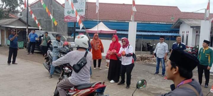 Rusyad Nurdin bersama sekcam, Rifai kades Patrol Baru,para pamong desa dan ibu-ibu PKK membagikan puluhan nasi bungkus dan roti kepada warga yang melintasi kantor desa setempat.