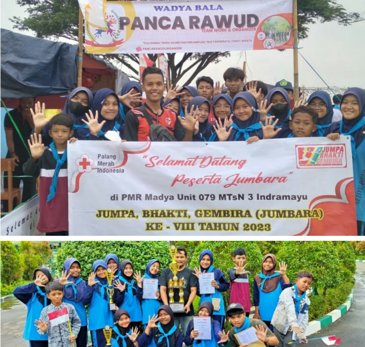 Indramayu Jabar, SIBER88.CO.ID_Raut kegembiraan terlihat diwajah kontingen MTsN 3 Indramayu,saat diumumkanya pemenang lomba pada kegiatan Jumpa Bhakti Gembira (Jumbara) yang di selenggarakan oleh PMI kabupaten Indramayu Tahun 2023.