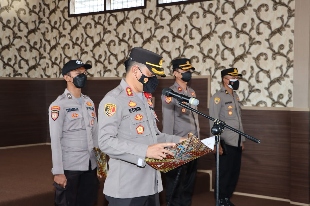 Lampung Selatan, SIBER88.CO.ID_Kepolres Lampung Selatan AKBP Edwin, SIK, MSi memimpin serah terima jabatan (Sertijab) Kabag Ops Polres Lampung Selatan, Senin (29/11/2021) di Aula GWL Polres Lampung Selatan.