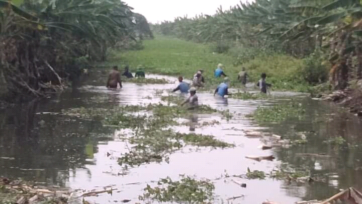 Kades Ade Nanto Ceburkan Diri Bersihkan Sampah Di Sungai Prawira Sudimampir Lor Indramayu