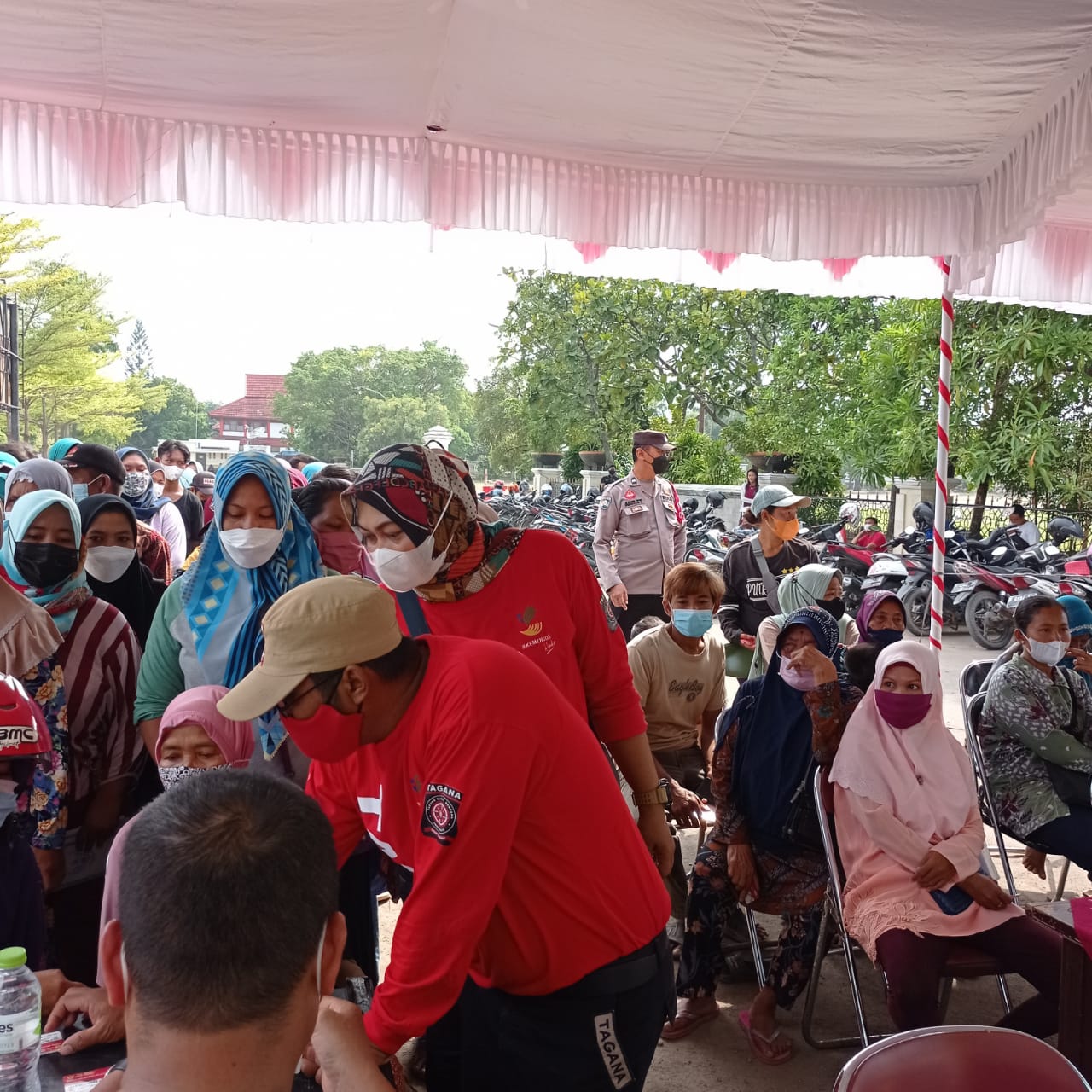 Indramayu Jabar, SIBER88.CO.ID_Sebanyak kurang lebih 4.085 kelompok penerima manfaat (KPM)mendatangi posko pendistribusian kartu keluarga sejahtera(KKS)di luar halaman pendopo kabupaten Indramayu Jawa Barat,Kamis(25/11/2021).