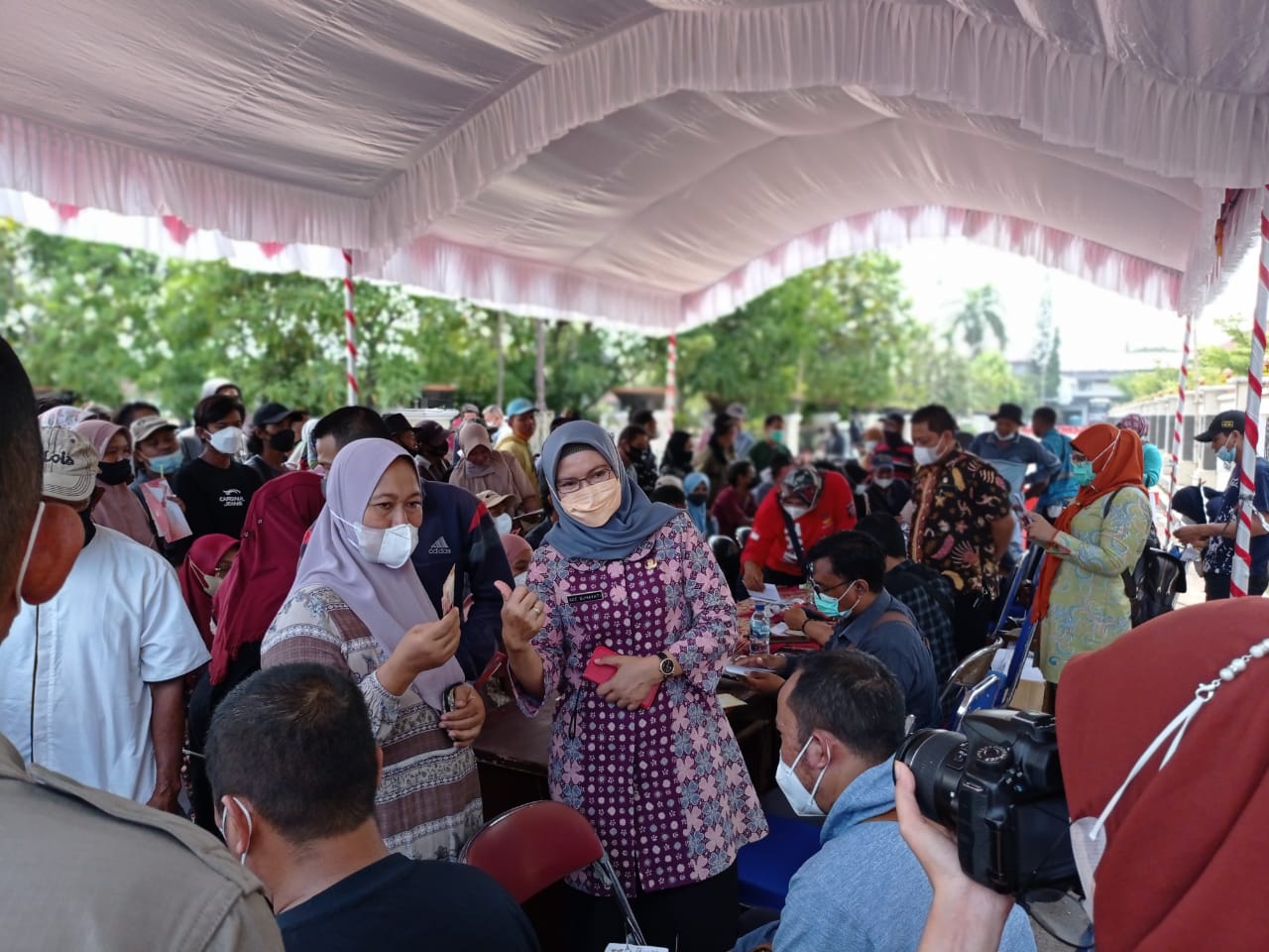Indramayu Jabar, SIBER88.CO.ID_Sebanyak kurang lebih 4.085 kelompok penerima manfaat (KPM)mendatangi posko pendistribusian kartu keluarga sejahtera(KKS)di luar halaman pendopo kabupaten Indramayu Jawa Barat,Kamis(25/11/2021).