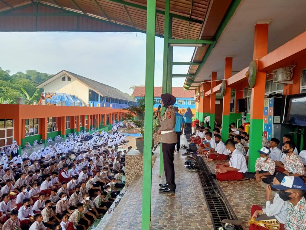 Kanit Lantas Polsek Sukaraja AKP Yulita, SH, MH memberikan materi Masa Pengenalan Lingkungan Sekolah (MPLS) yaitu Sosialisasi Tertib Berlalu Lintas dan Bahaya Narkoba kepada siswa dan siswi baru sebanyak 1.268 orang terdiri dari laki-laki dan perempun, Selasa (19/7/22).