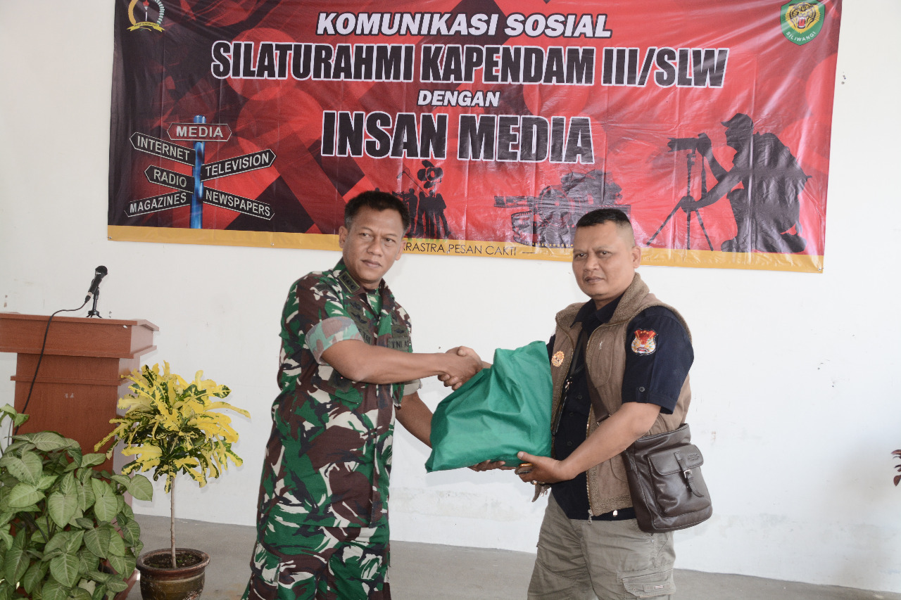 Kapendam III/Slw Kolonel Inf Arie Tri Hedhianto mengajak Insan Media Elektronik, Cetak, dan Media Online untuk tetap bersinergi dengan Pendam III/Slw yakni intens berkomunikasi dan saling berbagi informasi.