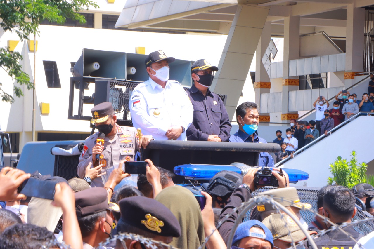 Ketegangan pun mereda, setelah Kapolda Lampung Irjen Pol Hendro Sugiatno dan jajaran beserta TNI, berdialog dengan mahasiswa sehingga ketegangan reda. Mahasiswa sempat salat zuhur berjamaah di depan pintu gerbang, katanya.