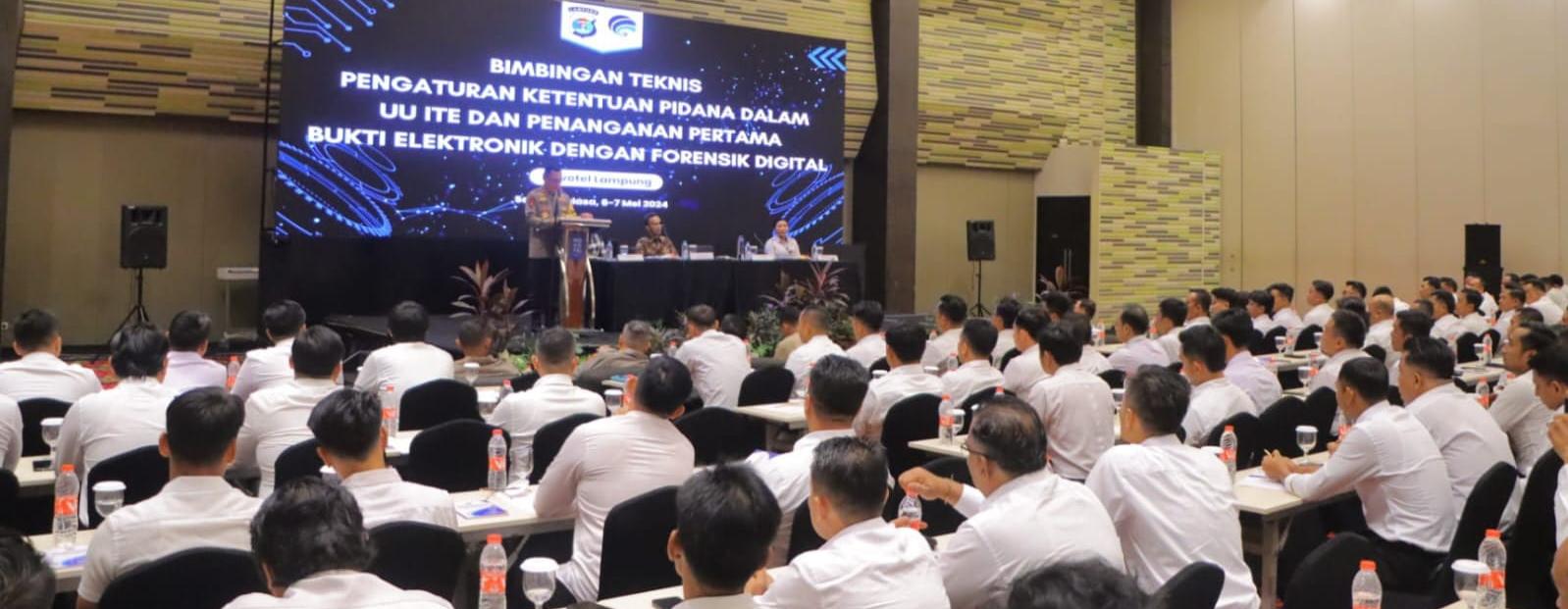 Lampung, SIBER88.CO.ID_Kapolda Lampung, Irjen Pol Helmy Santika membuka acara bimbingan teknis pengaturan ketentuan pidana dalam UU ITE dasar forensik digital dan penggunaan sistem aduan instansi, bertempat di Novotel Bandar Lampung, Senin (6/5/2024).