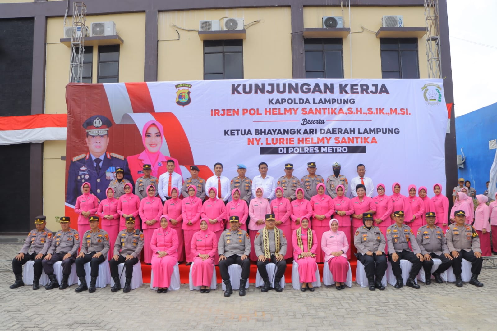 Lampung, SIBER88.CO.ID_Kapolda Lampung Irjen Pol Helmy Santika didampingi Wakapolda Lampung Brigjen Pol Umar Effendi, para Pejabat Utama Polda Lampung dan Ketua Bhayangkari Daerah Lampung Ny. Lurie Helmy Santika beserta pengurus Bhayangkari melaksanakan kunjungan kerja (kunker) ke Polres Metro. Selasa (8/8/23)
