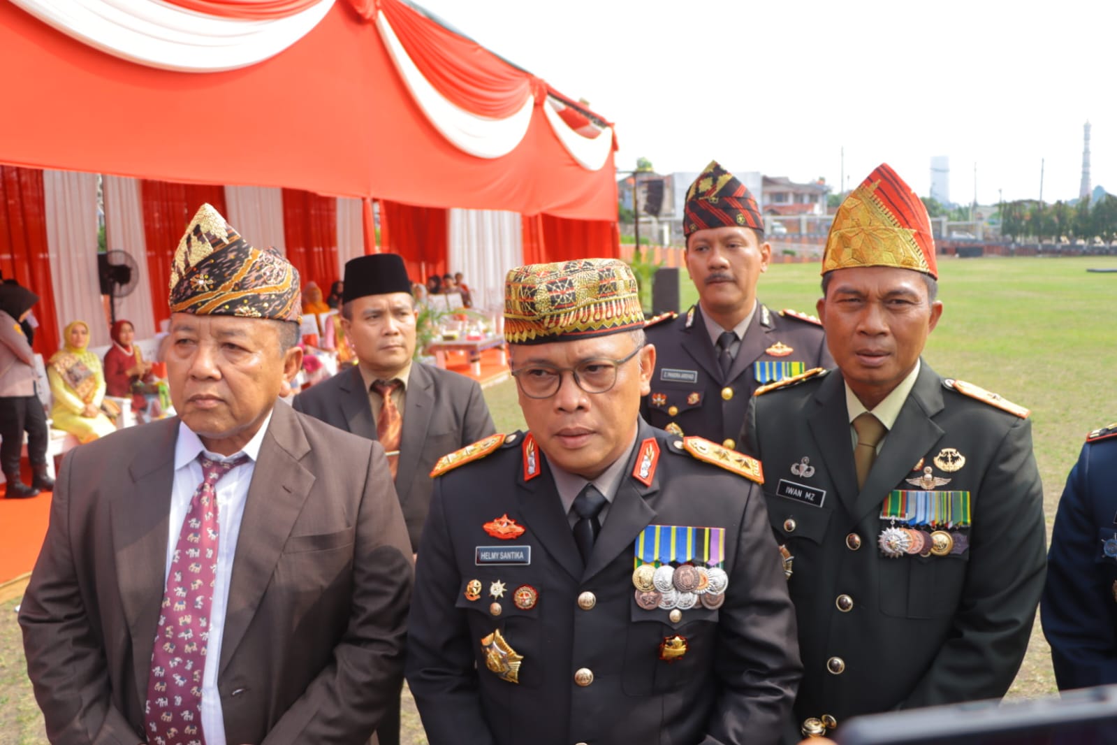 Di sela upacara Irjen Helmy menyampaikan apresiasi dan penghormatan yang setinggi-tingginya kepada seluruh tamu undangan yang hadir hari ini dan yang tidak dapat saya sebutkan satu persatu. Terima kasih atas kerjasamanya selama ini.