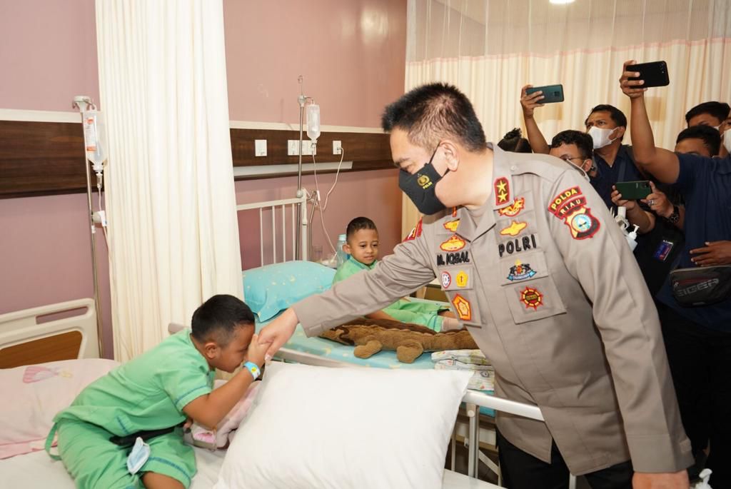 Pekanbaru Riau, SIBER88.CO.ID_Kapolda Riau, Irjen Pol Mohammad Iqbal, membezuk dua bocah penderita kelainan tulang di Rumah Sakit Awal Bros di Ahmad Yani, Kota Pekanbaru, Kamis (17/11/2022).