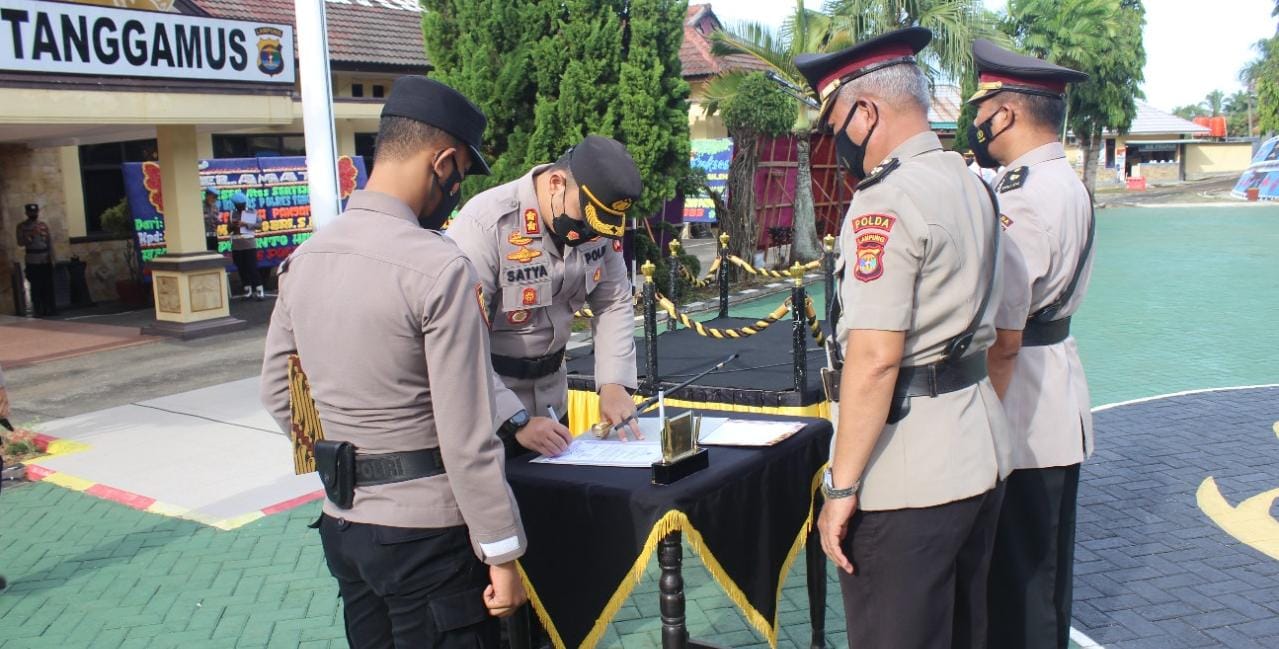 Serah terima jabatan (sertijab) dilaksanakan melalui upacara yang dipimpin Kapolres Tanggamus AKBP Satya Widhy Widharyadi, S.I.K dengan dihadiri pejabat utama, kapolsek jajaran, perwira, bintara, dan ASN Polres Tanggamus.