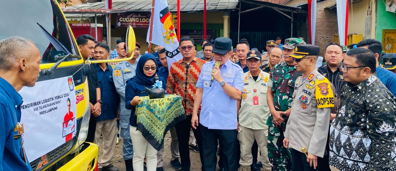 Pelepasan perdana logistik Pemilu juga dihadiri Pj Bupati Tulang Bawang Barat, Dandim 0426/LU, Letkol Inf Hery Eko Prabowo, Kepala Kejaksaan Negeri Tulang Bawang Barat di wakili oleh Jaksa Intel, Pabung Tubaba Kodim 0412/LU, Mayor Cpm Aris Setia Hadi, Wakapolres Tubaba, Kompol Heru Sulistyananto, para PJU Polres Tulang Bawang Barat, Ketua KPU Yudi Agusman berserta komisioner.