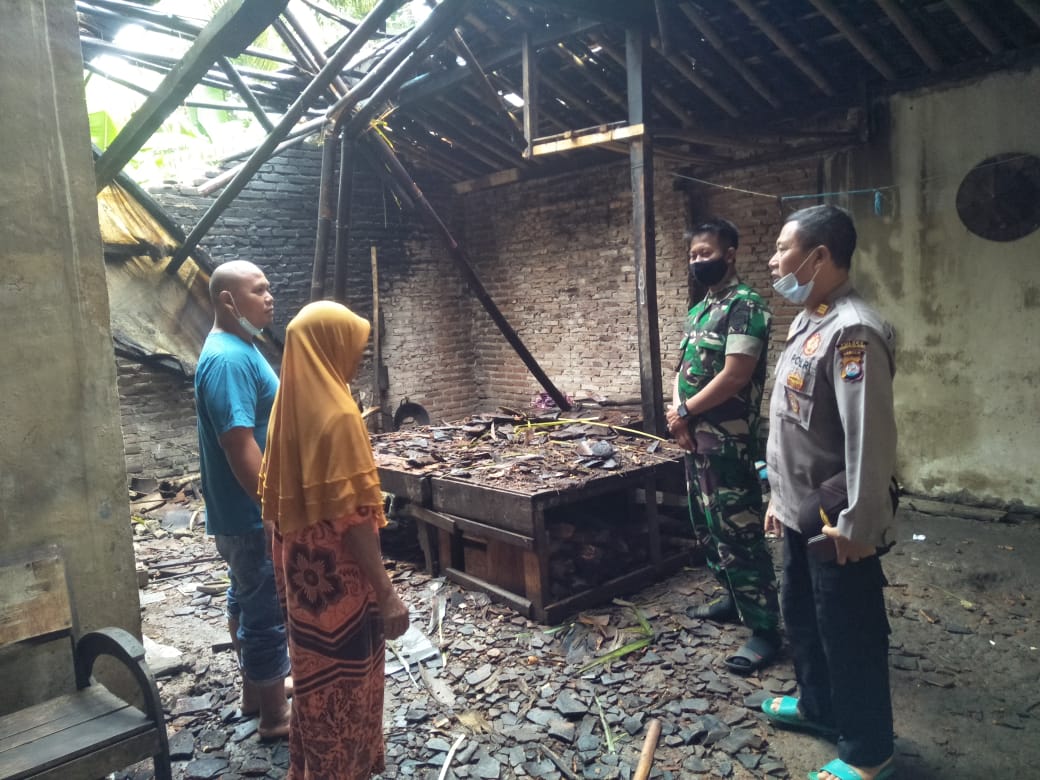 Pandeglang Banten, SIBER88.CO.ID_Kapolsek Banjar Akp Satir bersama Bhabinkamtibmas mendatangi TKP rumah rusak akibat tertimpa pohon tumbang di Kampung Kadumaneuh Desa Kadumaneuh Kecamatan Banjar Kabupaten Pandeglang. Selasa, (07/12/2021).
