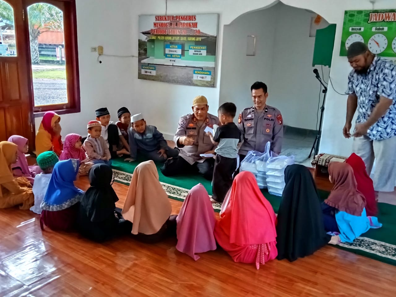 Dalam bulan suci Ramadhan Kapolsek Karang Jaya AKP Surhadi Burhan bersama Personil tanggal 27 April 2022 telah melaksanakan “Buka Bersama” anak anak TPA Mushola Albarokah Polsek Karang Jaya,sebelum Acara buka bersama Kapolsek memberikan pelajaran Sholat, serta mendongeng tentang cerita “Orang Sholeh”
