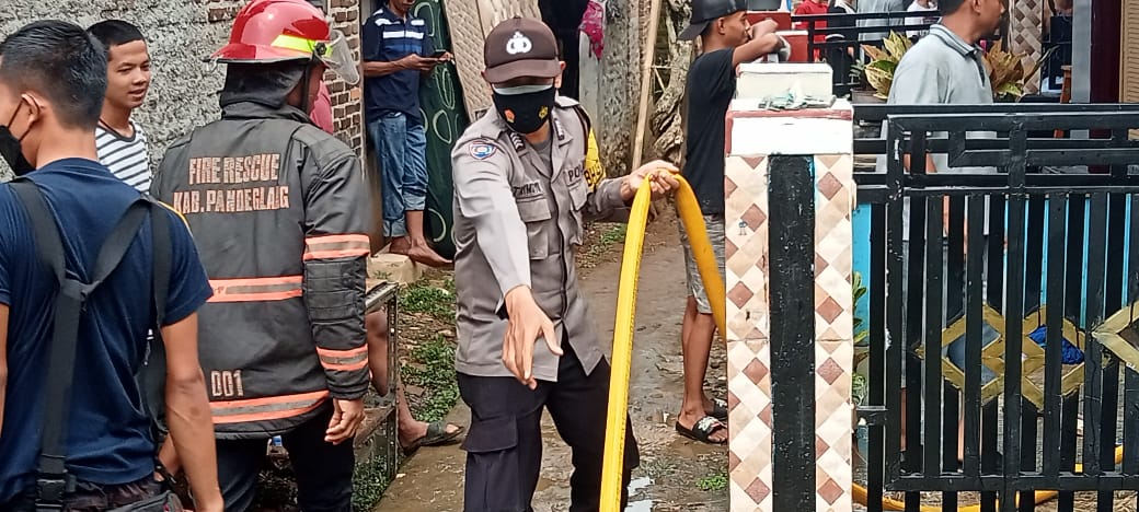 Atas kejadian ini, kapolsek Pandeglang Yang memimpin langsung ke TKP dengan pers piket siaga polsek Pandeglang dan tim pemadam kebakaran (Damkar) Kabupaten Pandeglang bersama warga bahu membahu untuk memadamkan kobaran api serta mengevakuasi keluarga korban dan barang milik korban ke tempat yang lebih aman.