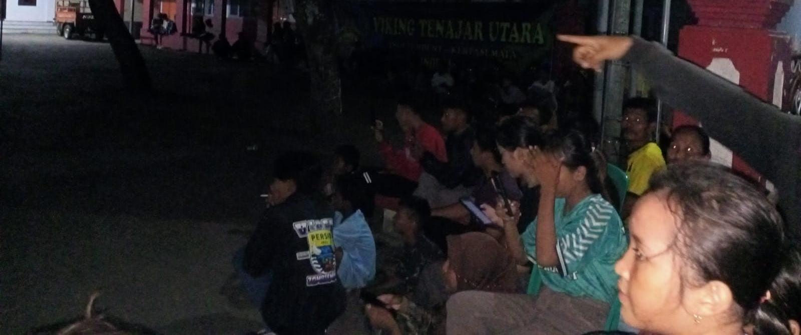 Para pengurus dan anggota Karang Taruna Tunas Karya mengajak para warga untuk nonton bareng pertandingan sepak bola di balai desa Sambimaya pada Minggu malam(3/3/2024).