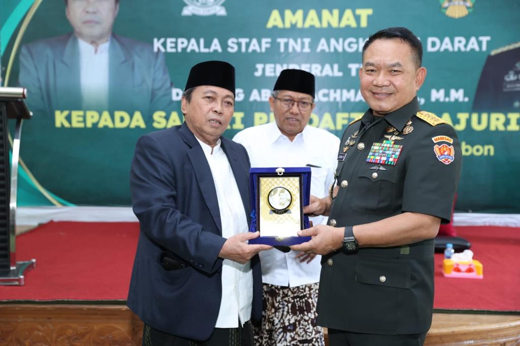 Cirebon Jabar, SIBER88.CO.ID_Kepala Staf Angkatan Darat (Kasad) Jenderal TNI Dudung Abdurahman, S.E., M,M., dihadapan para santri dan santriwati Ponpes Khas Kempek Cirebon, mengajak para santri dan santriwati untuk bergabung menjadi Prajurit TNI AD. Demikian disampaikan Kasad dalam rangkaian kunjungan kerja di wilayah Kabupaten Cirebon, saat berkesempatan mengunjungi Pondok Pesantren Khas Kempek Cirebon, Minggu (16/1/2022).