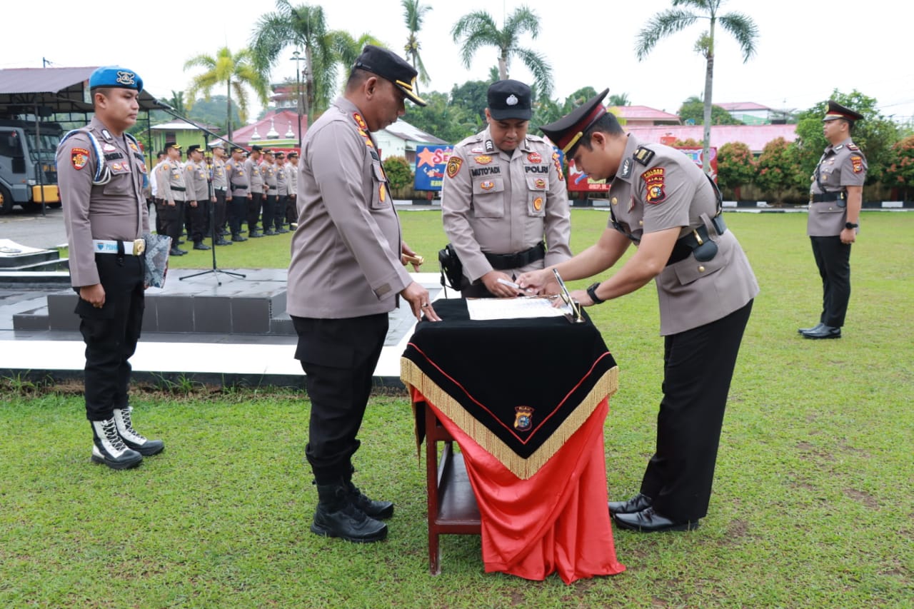 Peserta upacara terdiri dari Pejabat Utama Polres Kampar dan Para Kapolsek serta Para Perwira dan Perwakilan personel.