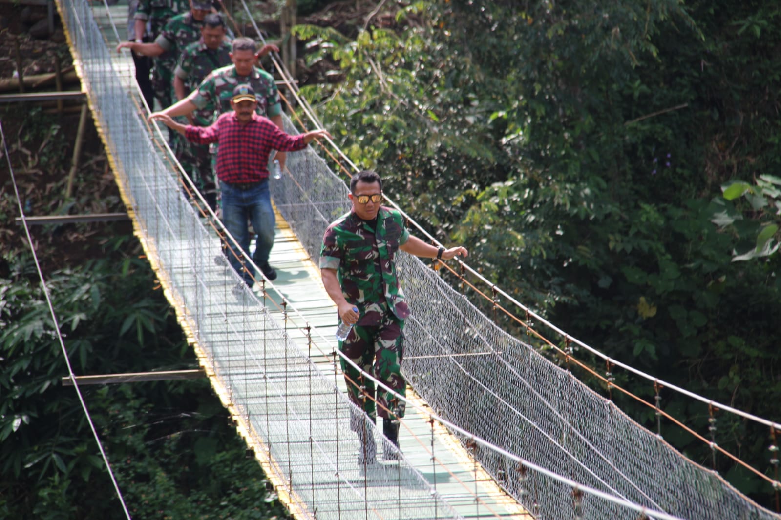 Lanjutnya mengatakan, jembatan gantung ini diresmikan oleh Pangdam III/Slw melalui Video Conference di Mess Pemda Sindangkerta Kecamatan Cipatujah, Kabupaten Tasikmalaya, Sabtu 18 Juni 2022 lalu.