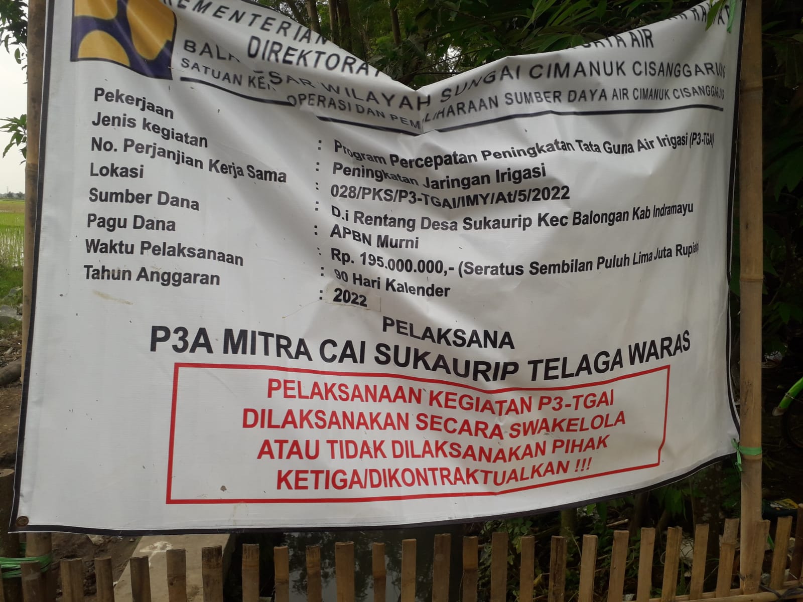 Proyek yang menelan anggaran sebesar 195.000.000 rupiah tersebut berasal dari anggaran murni APBN tahun 2022 dalam papan proyek diterangkan bahwa pelaksanaan P3-GAI dilaksanakan secara swakelola atau tidak dilaksanakan pihak ketiga/dikontraktualkan.