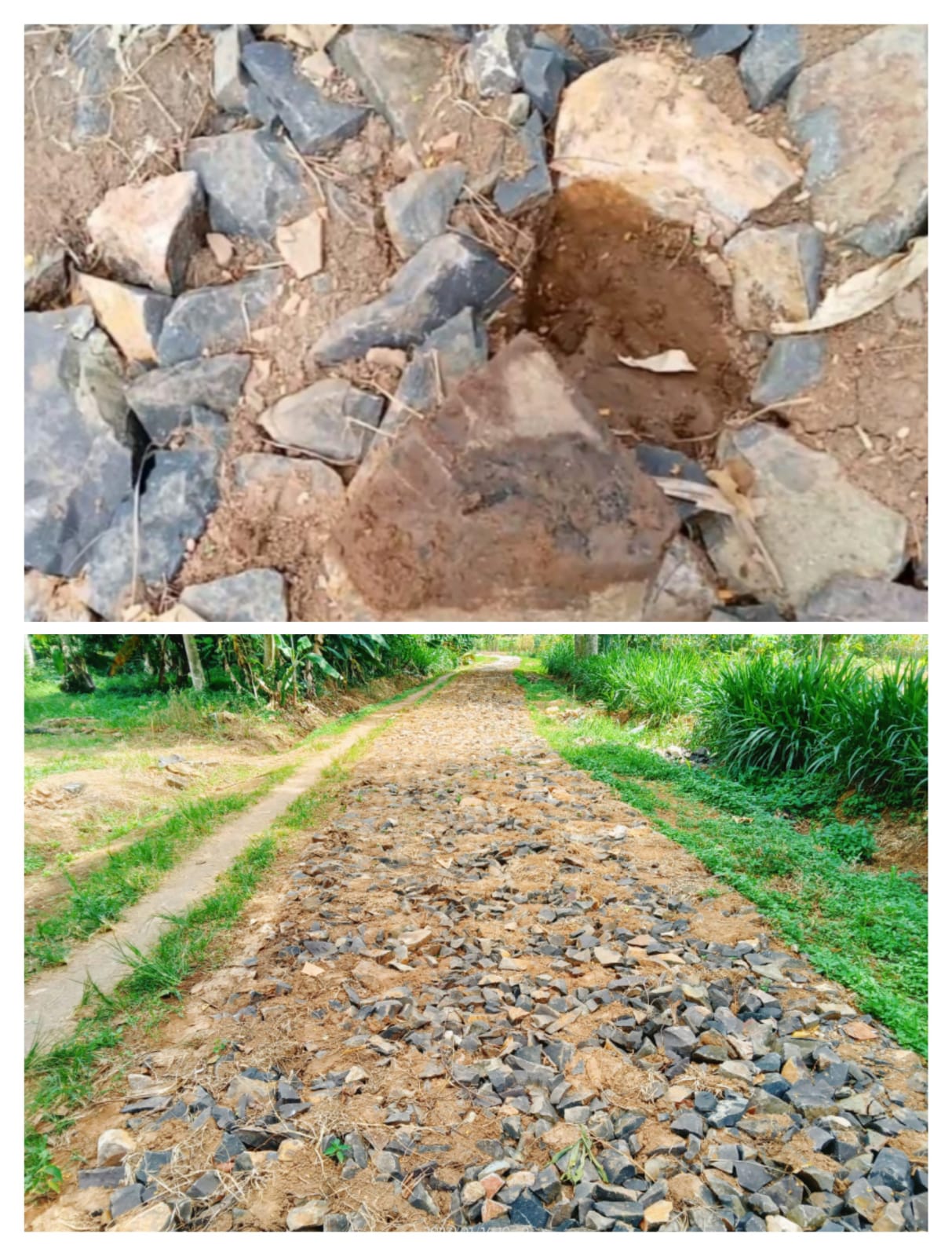 Terekam oleh kamera di lapangan jalan onderlagh yang menggunakan anggaran Dana Desa (DD) Ratusan juta rupiah dengan anggaran Rp. 235.000.000 (Dua ratus tiga puluh lima juta rupiah) volume 1060×2,5M diduga dikerjakan asal-asalan atau amburadul tidak memperhatikan kualitas jalan itu sendiri.