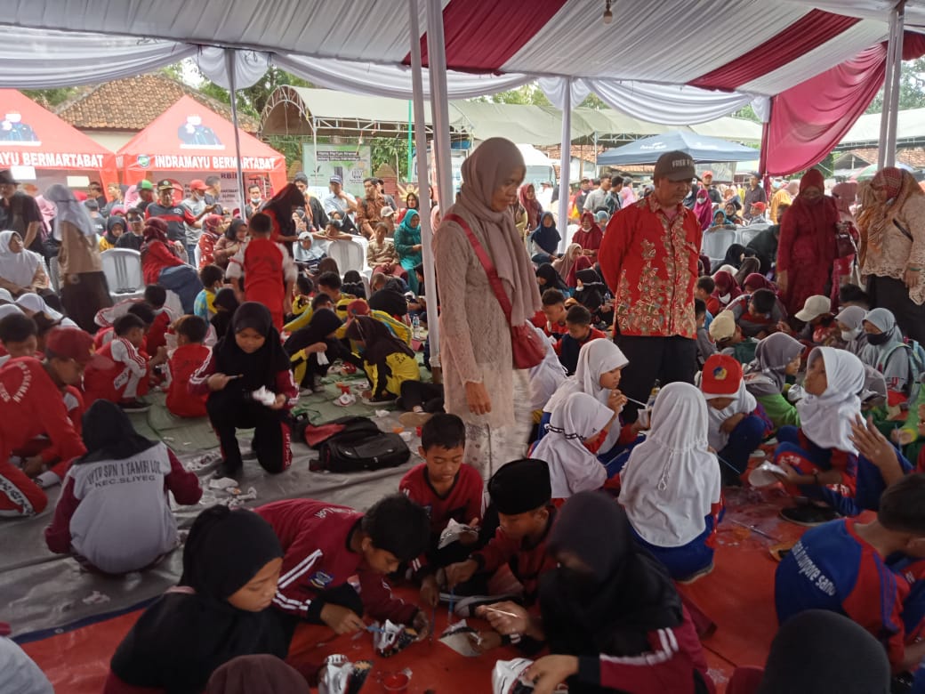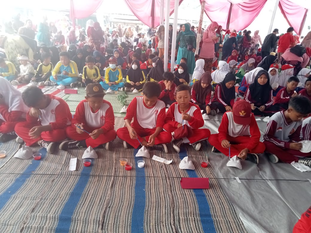 Berbagai kegiatan ditampilkan,salahsatunya melukis topeng yang dilakukan oleh anak sekolah dasar se-kecamatan Sliyeg.