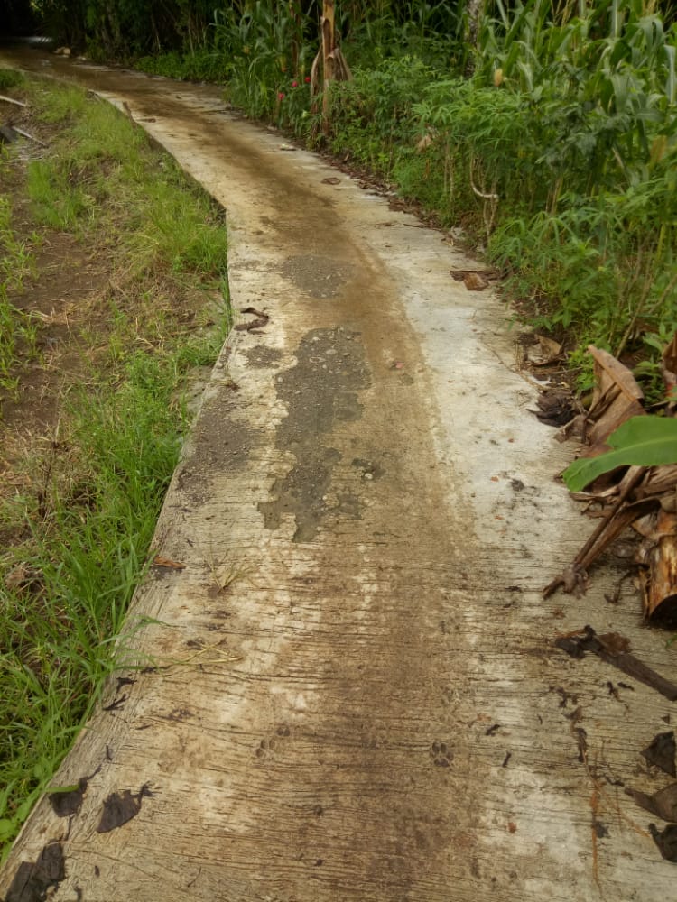 Jalan Usaha Tani yang diakui mansyarakat (petani) sekitar selesai pada beberapa bulan lalu yaitu sekitar bulan Agustus 2021, sekarang kondisinya sudah mengalami retak dan juga pecah parah disepanjang badan jalan .