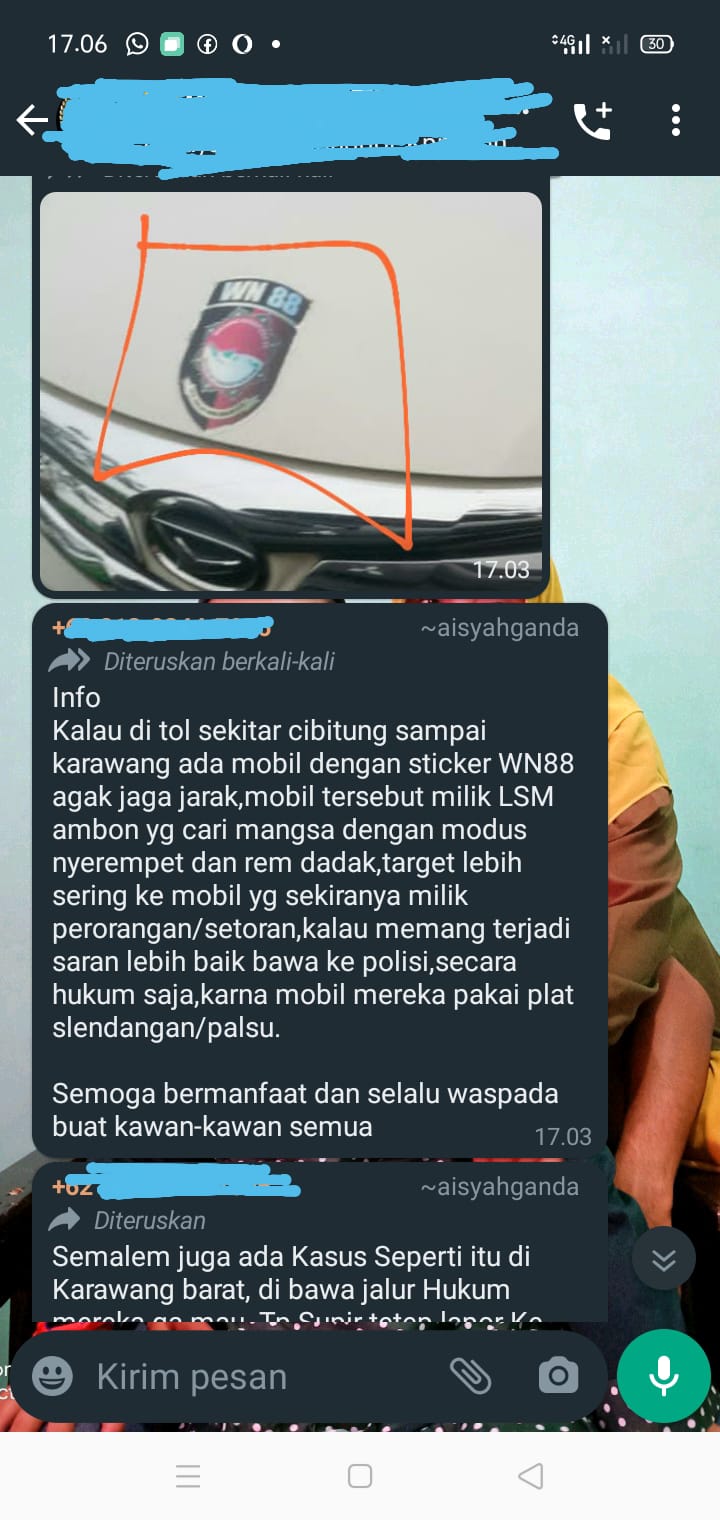 Bekasi Jabar, SiBER88.CO.ID_Telah viral berita informasi pencemaran nama baik wn88 bekasi raya yang terjadi kepada anggota kami yang sudah di berikan SK WN 88 Sub Unit 01 Sektor Cikarang Barat dan sudah di legalkan oleh ketua wn88 bekasi raya (Mahdi Soekarta, T.Bob. S.Thi.selaku ketua wn88 sub unit 01 bekasi raya merasa di rugikan atas oknum yang mencemarkan wn88 seluruh indonesia,H.hendro Malvinas ketua WN 88 sub unit 01 DKI Jakarta.