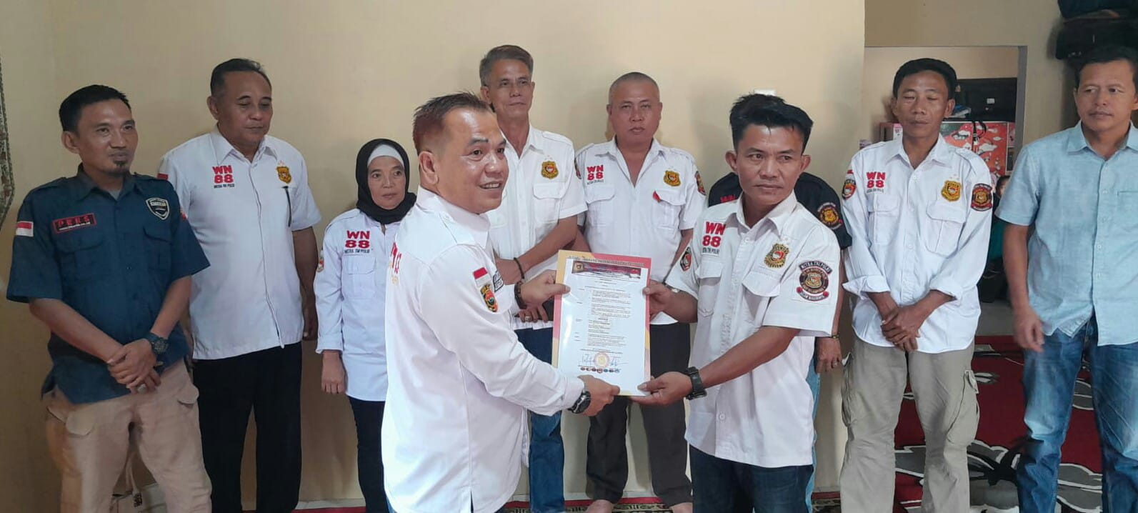 Pesawaran Lampung, SIBER88.CO.ID_Sofyan DP selaku ketua WN88 unit 13 Lampung menyerahkan mandat kewenangan kepada Bonizar selaku Ketua WN88 Sub Unit 13 Pesawaran di Desa Tambangan kecamatan Padang Cermin Pesawaran,Minggu(3-12-2023).