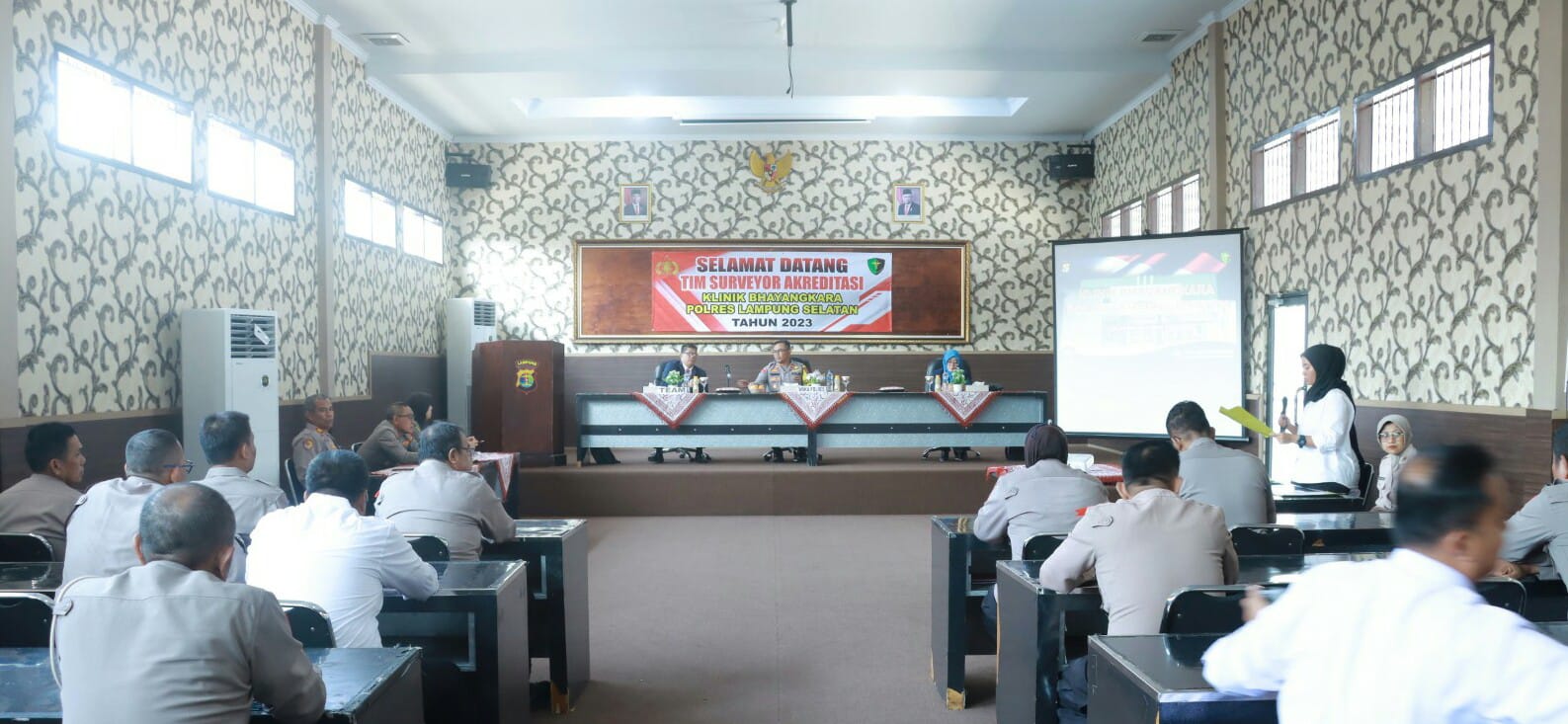Lampung Selatan, SIBER88.CO.ID_Klinik Bhayangkara Polres Lampung Selatan menjalani survei akreditasi guna mendukung peningkatkan serta menjamin mutu pelayanan dan keselamatan bagi pasien anggota Polri, PNS, keluarga dan masyarakat.
