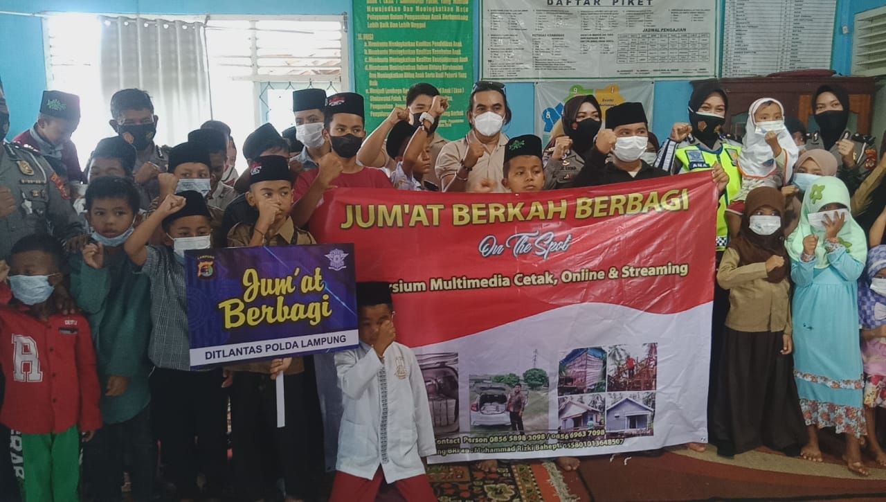 ” Bahwa kegiatan Jum’at Berbagi ini lokasinya berpindah-pindah. Kebetulan hari ini lokasinya di Pesawaran, untuk itu kami berkoordinasi dengan Kasat Lantas Polres Pesawaran, ” ucapnya.