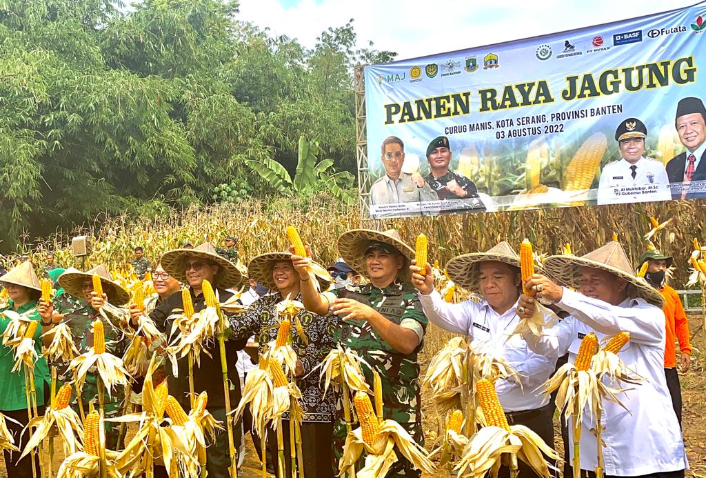 “Tidak hanya panen jagung saja, Mayjen TNI Kunto Arif Wibowo bersama Wakil Menteri Pertanian Harvick Hasnul Qolbi, Danrem 064/MY Brigjen TNI Yunianto, Pj Gubernur Banten Al Muktabar dan beberapa unsur terkait lainnya, melaksanakan kegiatan penanaman benih jagung dengan menggunakan alat Rotari,” imbuhnya.