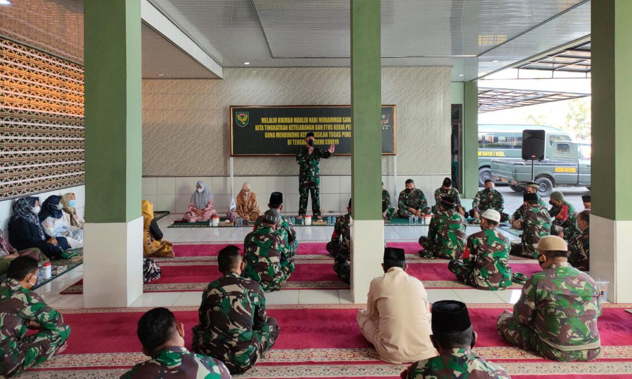 Bertempat di Markas Kodim 0410/KBL Jln. Imam Bonjol, Langkapura, Kota Bandar Lampung, kegiatan ini mengusung tema ‘Melalui Hikmah Maulid Nabi Muhammad SAW 1443 H Kita Tingkatkan Keteladanan Dan Etos Kerja Personil TNI Guna Mendukung Keberhasilan Tugas Pokok TNI di Tengah Pandemi Covid-19’.