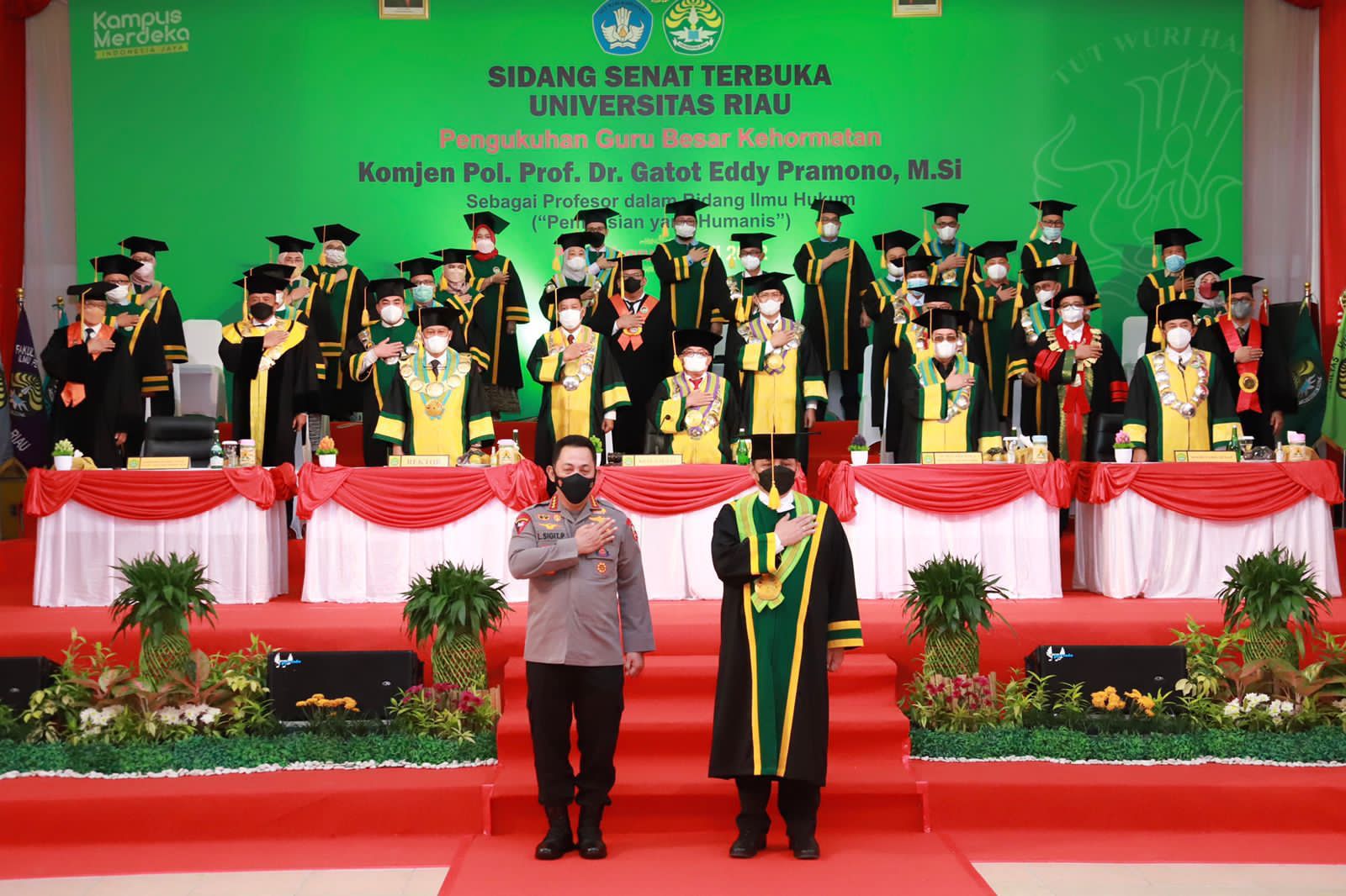 Ini setelah Jenderal polisi bintang tiga itu, menjalani rangkaian sidang senat terbuka pengukuhan Guru Besar Kehormatan, bertempat di Auditorium Kampus UNRI, Jalan Diponegoro, Kota Pekanbaru, Rabu (20/7/2022).