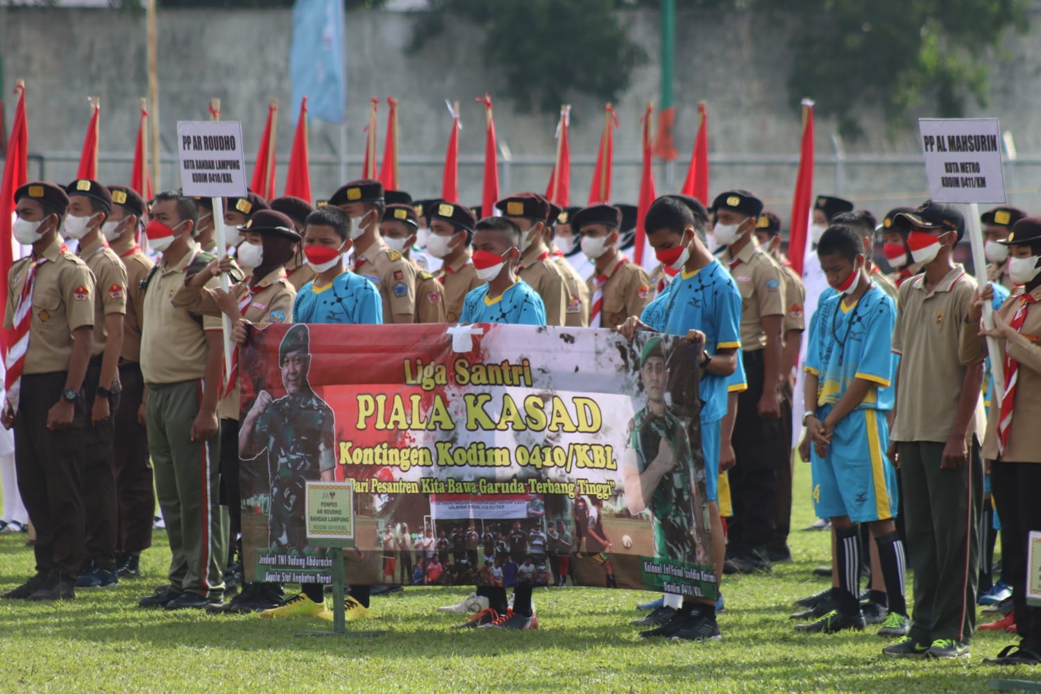 Bandar.Lampung, SIBER88.CO.ID_Kontingen santri binaan Kodim 0410/KBL mengikuti seleksi liga Santri PSSI Piala KASAD Tahun 2022 di tingkat Provinsi Lampung.