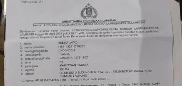 Indra, mengaku kebingungan atas laporan dirinya dan istrinya tak kunjung diproses, padahal dirinya dan istrinya sudah melaporkan kejadian tersebut kepada Polresta Bandar Lampung sejak tanggal 25 Maret 2025 dan 4 April 2025.“Sudah hampir tujuh bulan laporan tersebut belum juga ada perkembangan atau ditindaklanjuti,” kata Indra kepada awak media kamis, (9/10/2025).