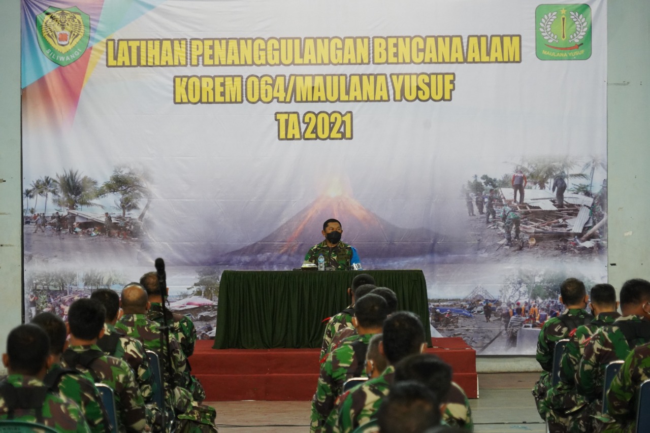 “Secara geografis potensi terjadinya bencana alam di tanah air, khususnya di wilayah Banten relatif tinggi, untuk itu seluruh satuan kewilayahan Jajaran Korem 064/MY harus selalu siap siaga, berperan aktif dalam membantu masyarakat yang tertimpa bencana alam,“ ucap Kasrem