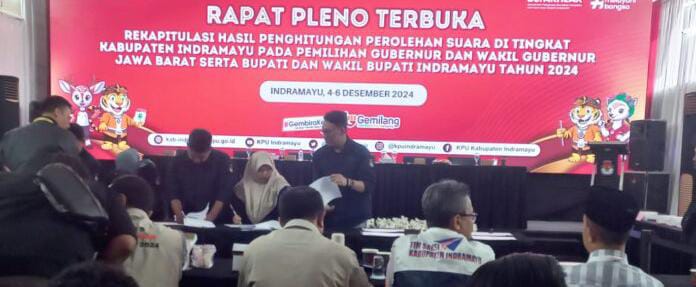 Indramayu Jabar, SIBER88.CO.ID_ Rapat pleno terbuka rekapitulasi hasil suara pemilihan kepala daerah(Pilkada)2024 untuk pemilihan Gubernur dan Wakil Gubernur Jawa Barat,serta pemilihan Bupati dan Wakil Bupati Indramayu telah diselesaikan Komisi Pemilihan Umum (KPU) Kabupaten Indramayu pada Jum’at(6/12/2024).