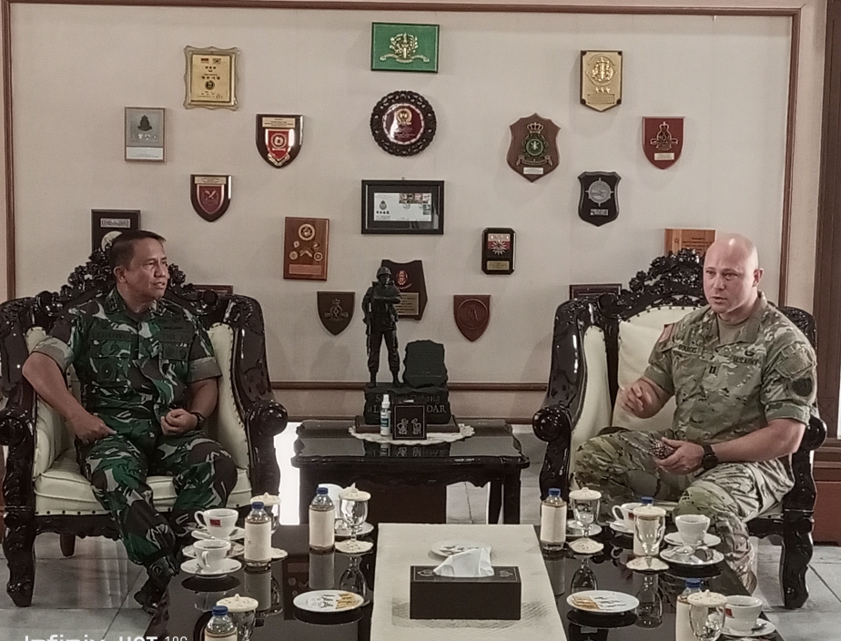 Magelang, SIBER88.CO.ID_Gubernur Akademi Militer Mayjen TNI Legowo W.R. Jatmiko, S.I.P., M.M. menerima kunjungan Captain Henry Fredreich Squiers Instruktur AD Amerika Serikat bertempat di Ruang Sudirman Akademi Militer Magelang. Senin (15/08/2022).