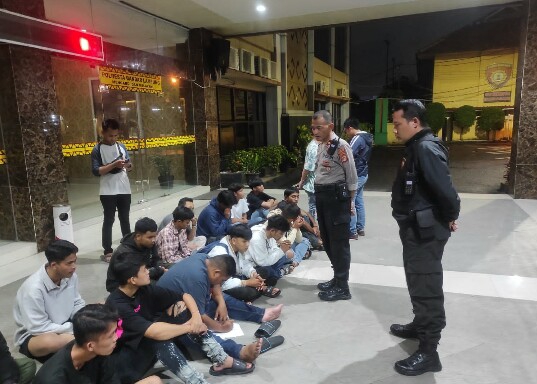 Sejumlah Remaja ini di amankan petugas saat berkumpul di peralataran parkir Indomaret DRIVE THRU jalan ZA pagar Alam kelurahan Gedung Meneng Baru kecamatan Raja basa kota Bandar Lampung