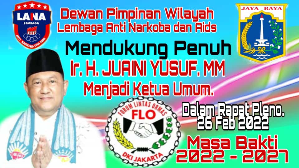 Jakarta, SIBER88.CO.ID_Lembaga Anti Narkoba Dan Aids (LANA) mendukung penuh atas terpilihnya Ir. H Juaini Yusuf, MM menjadi Ketua Umum Forum Lintas Ormas (FLO) menggantikan KH Zaini Yang baru saja meninggal dunia